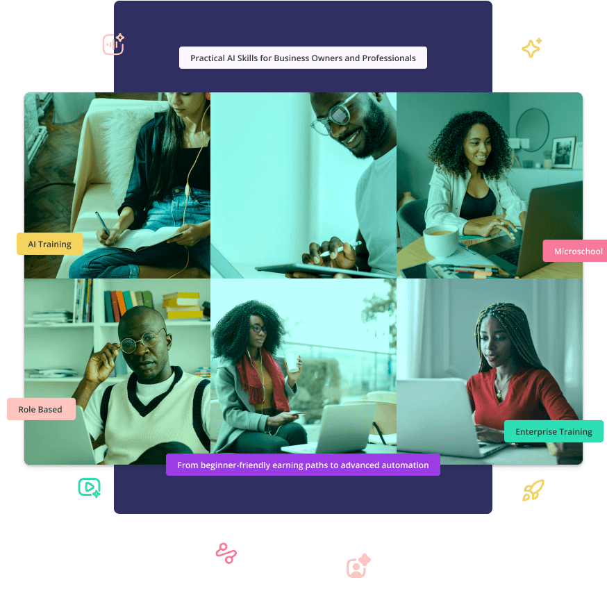 A learning program designed for women to learn, build, and gain the confidence to use AI in their work, business, and personal projects, helping them stay relevant and unlock new earning opportunities.